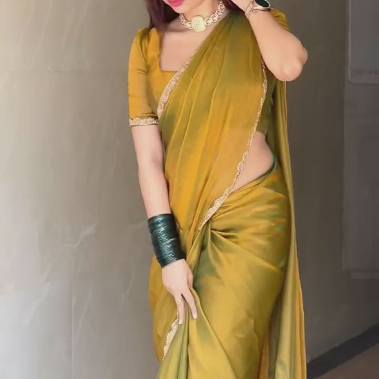 Introducing the Premium Fandy Silk Saree, designed for modern queens who love traditional flair. This luxurious drape features a soft, rich Fandy silk base paired with an elegant handwork lace border – giving you that flawless festive glow.