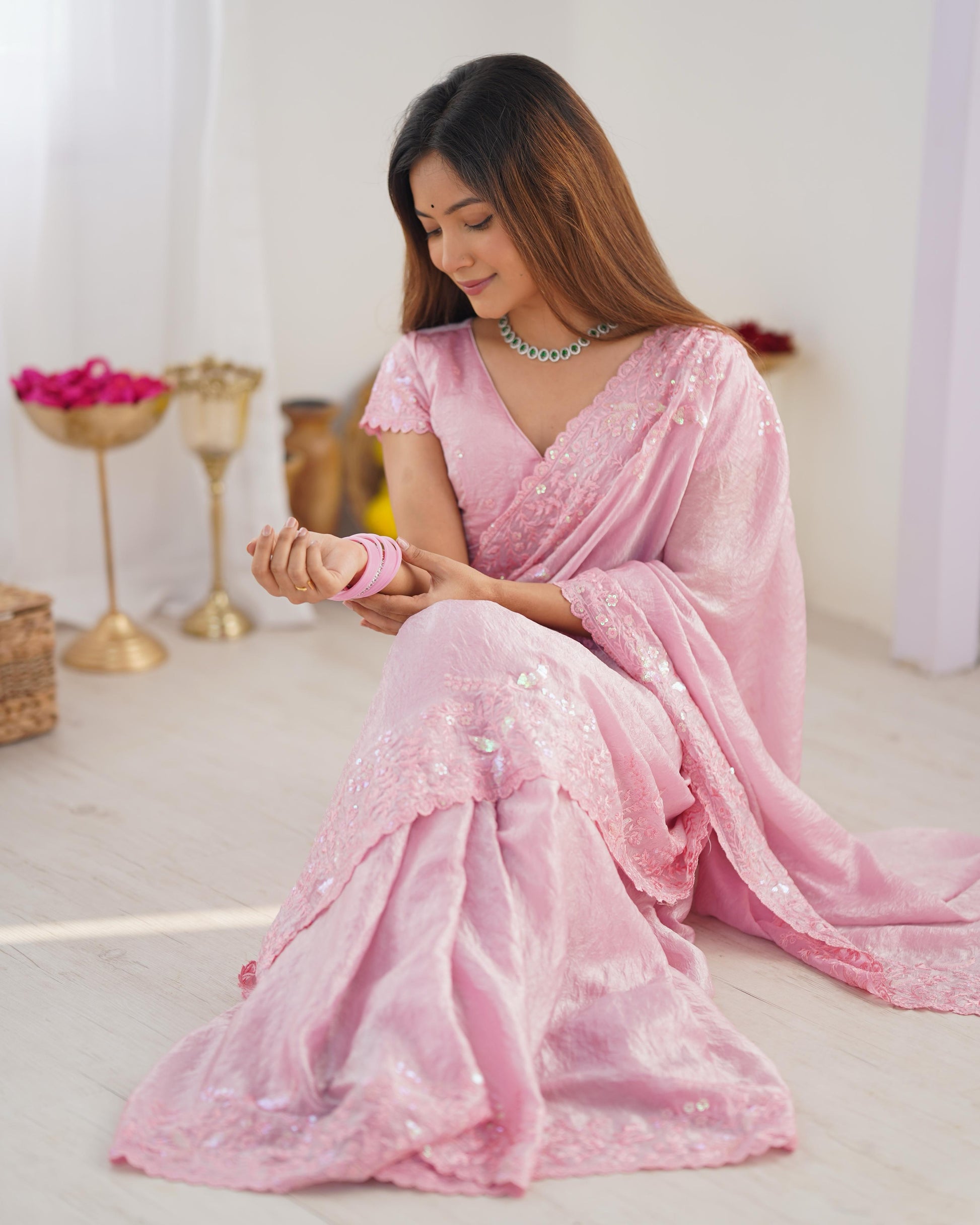 Premium Crushed Tissue Silk Saree with Lucknowi Thread & Sequin Work – Festive Special | The Sareen