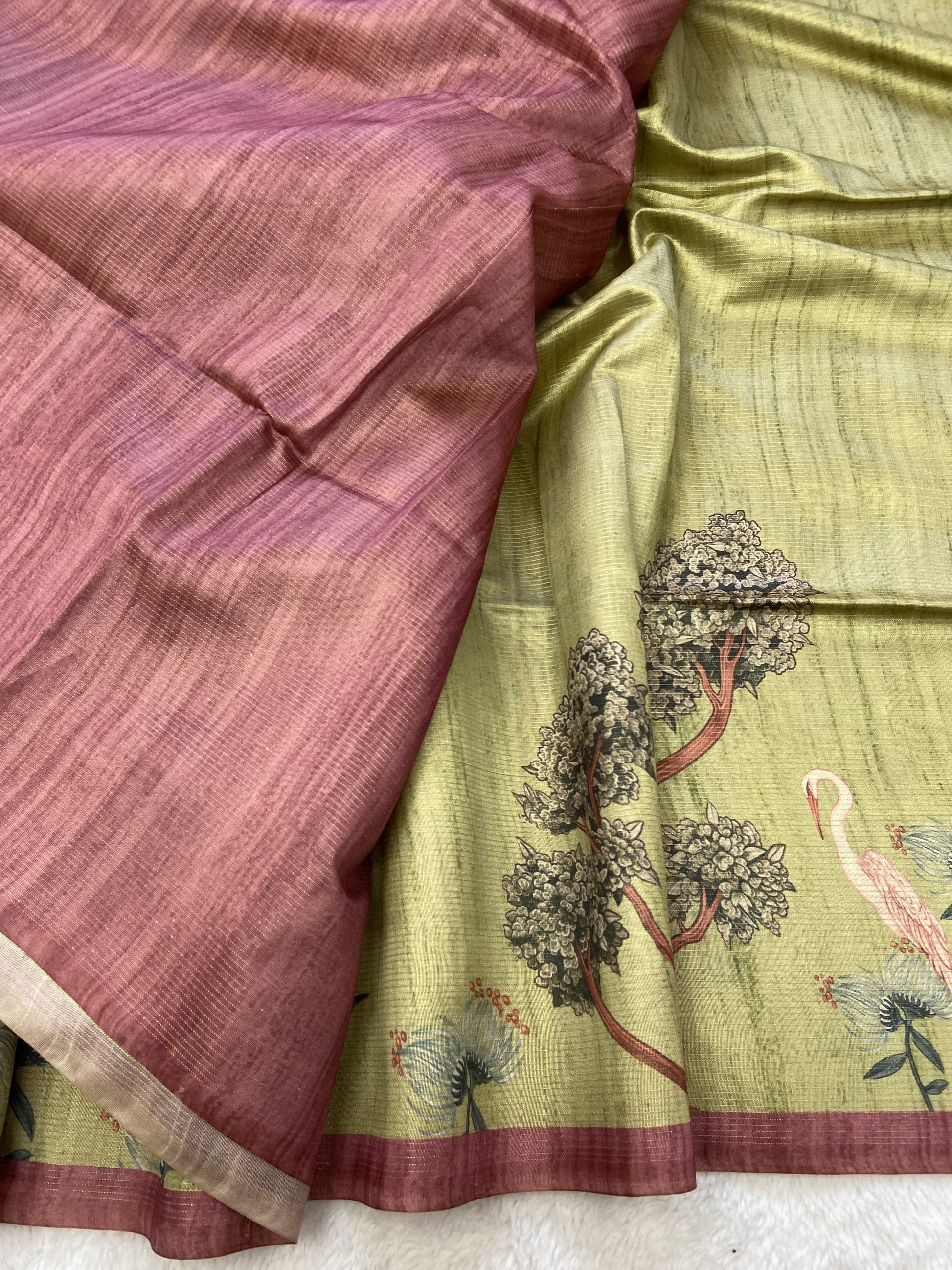 Soft Tussar Silk Saree with Zari Lines & Printed Blouse