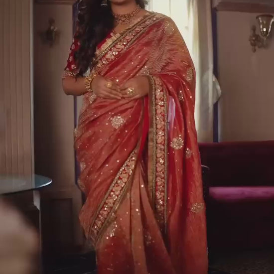 Step into the spotlight with The Sareen’s VF Bollywood Designer Saree, a breathtaking blend of timeless tradition and modern glam. Crafted in luxurious Banarasi Crush fabric, this saree features exquisite sequin and cording embroidery work, elevated by a fancy lace border that adds just the right touch of elegance.