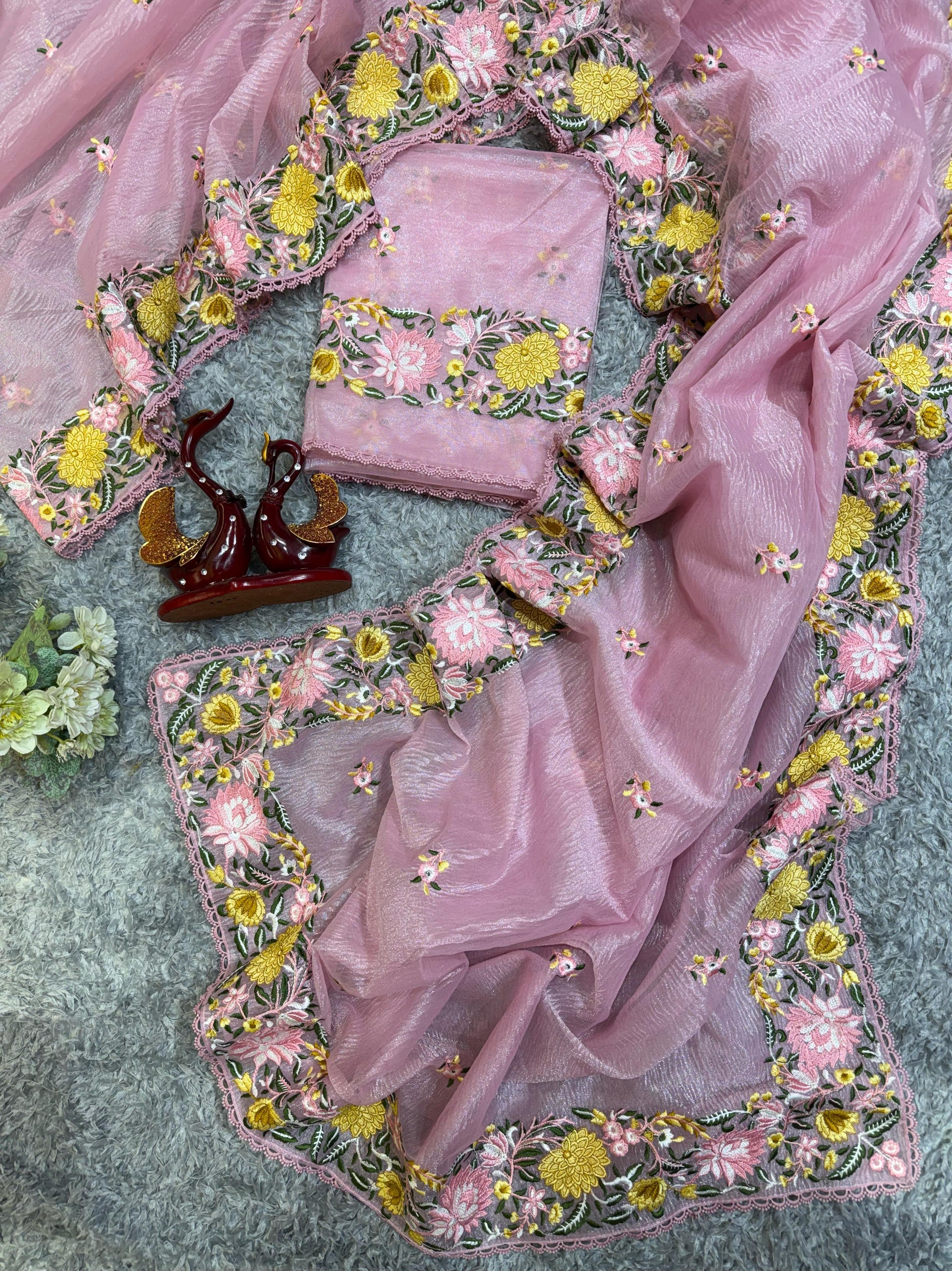 👚 Blouse: Unstitched blouse with matching multithread embroidery