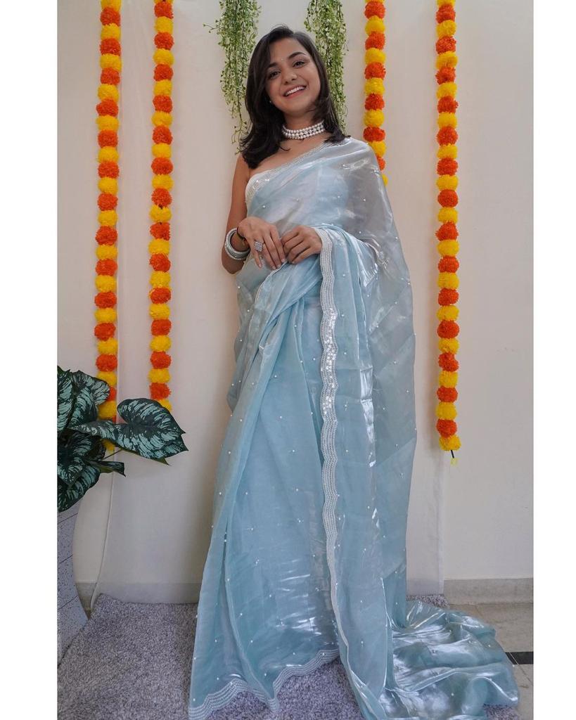 🌟 Border: Exclusive heavy sequin and pearl cutwork detailing