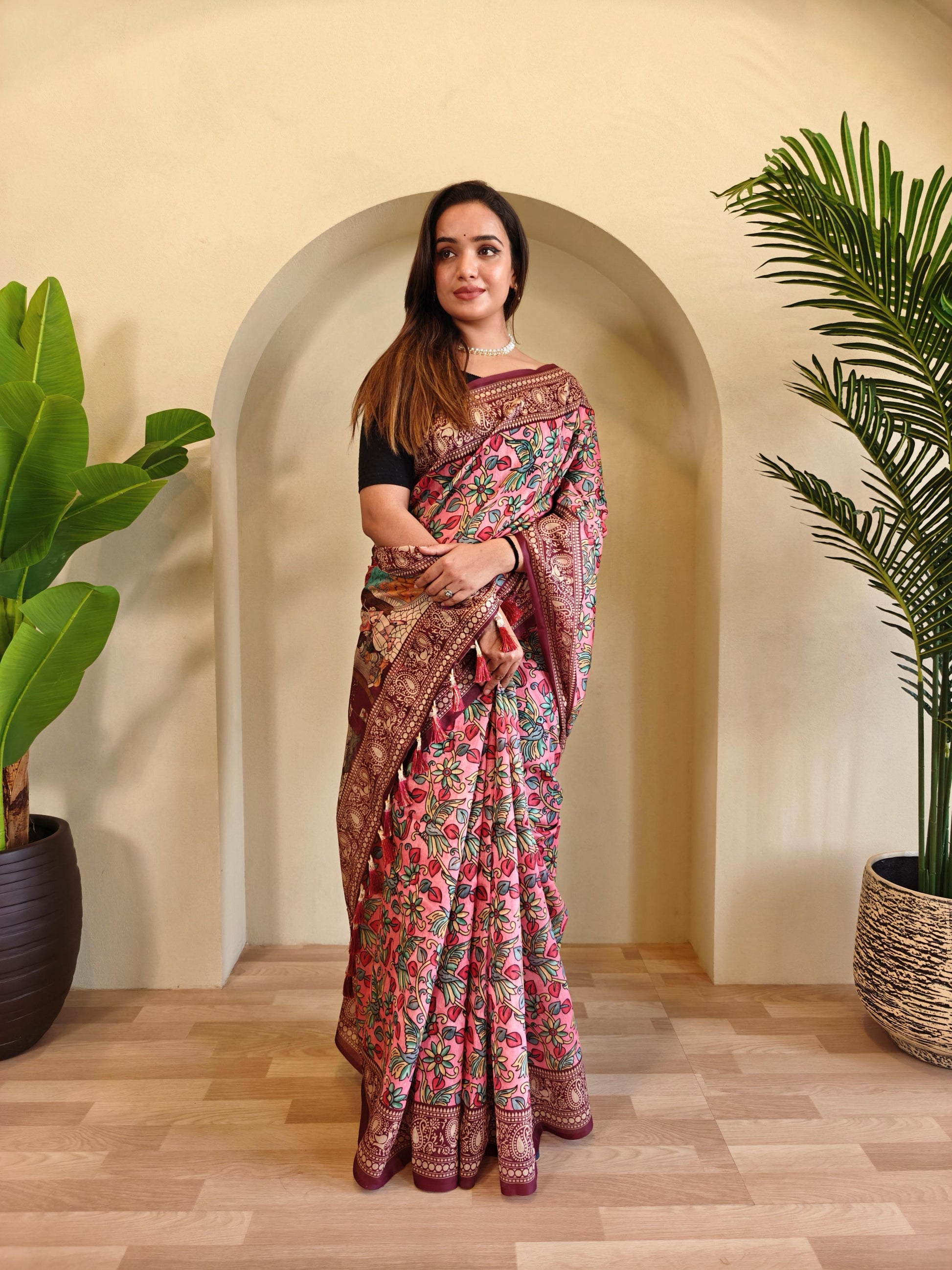 VF Madhu Soft Cotton Chanderi Saree with Kalamkari Digital Print & Tassels – Elegant Ethnic Wear | C-517A